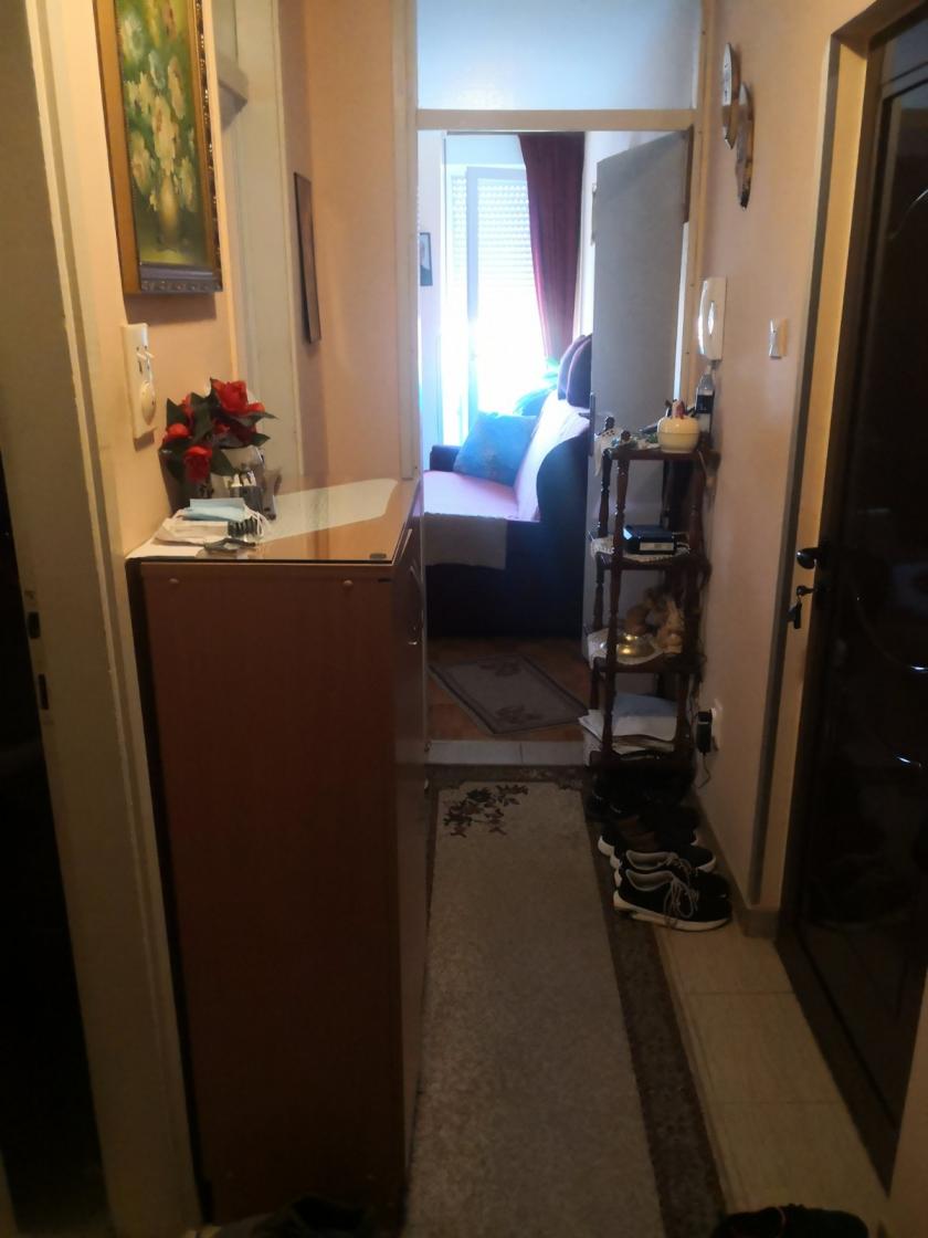 Dvosoban stan na drugom spratu, grejanje na gas, zgrada ima lift. Struktura / predsoblje, kupatilo, kuhinja sa trpezarijom, dnevna soba, spavaća soba, 2 terase/. Stanu pripada podrum. Stan je u blizini više marketa i fakulteta.